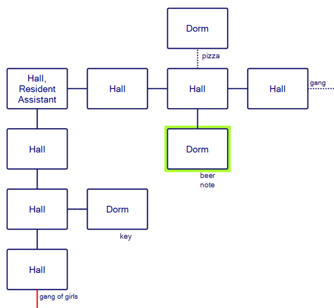 The trick is to not pick up the beer, walk on past, slip into another dorm and grab a key, avoid meeting the gang of girls down the south hall…