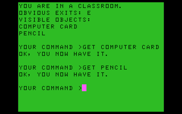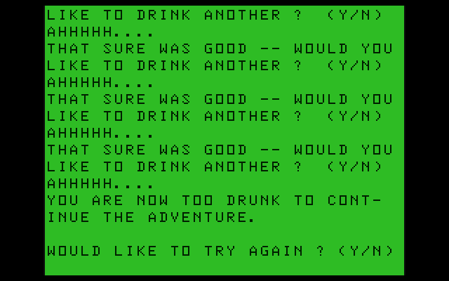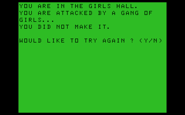 After that, there’s a long gap until the next adventure, which the listing guide calls College Adventure but the game itself calls University Adventure. Confusingly, the file is called COLLADV/BAS.