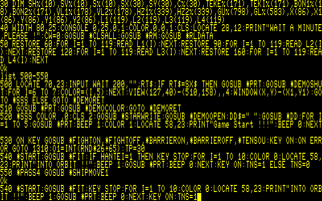 I’m far past adventure territory so I can consider this one done. The cinematic ambition is impressive and I found the imagination of both “act 2” sections I experienced to be exciting, just janky and undercooked for BASIC source code on an ancient system. The “ship docking” section with giant monoliths made me think the author was trying to make cinema more than a game. Not only thinking of 2001 here, but the long special effect sections of Star Trek: The Motion Picture.