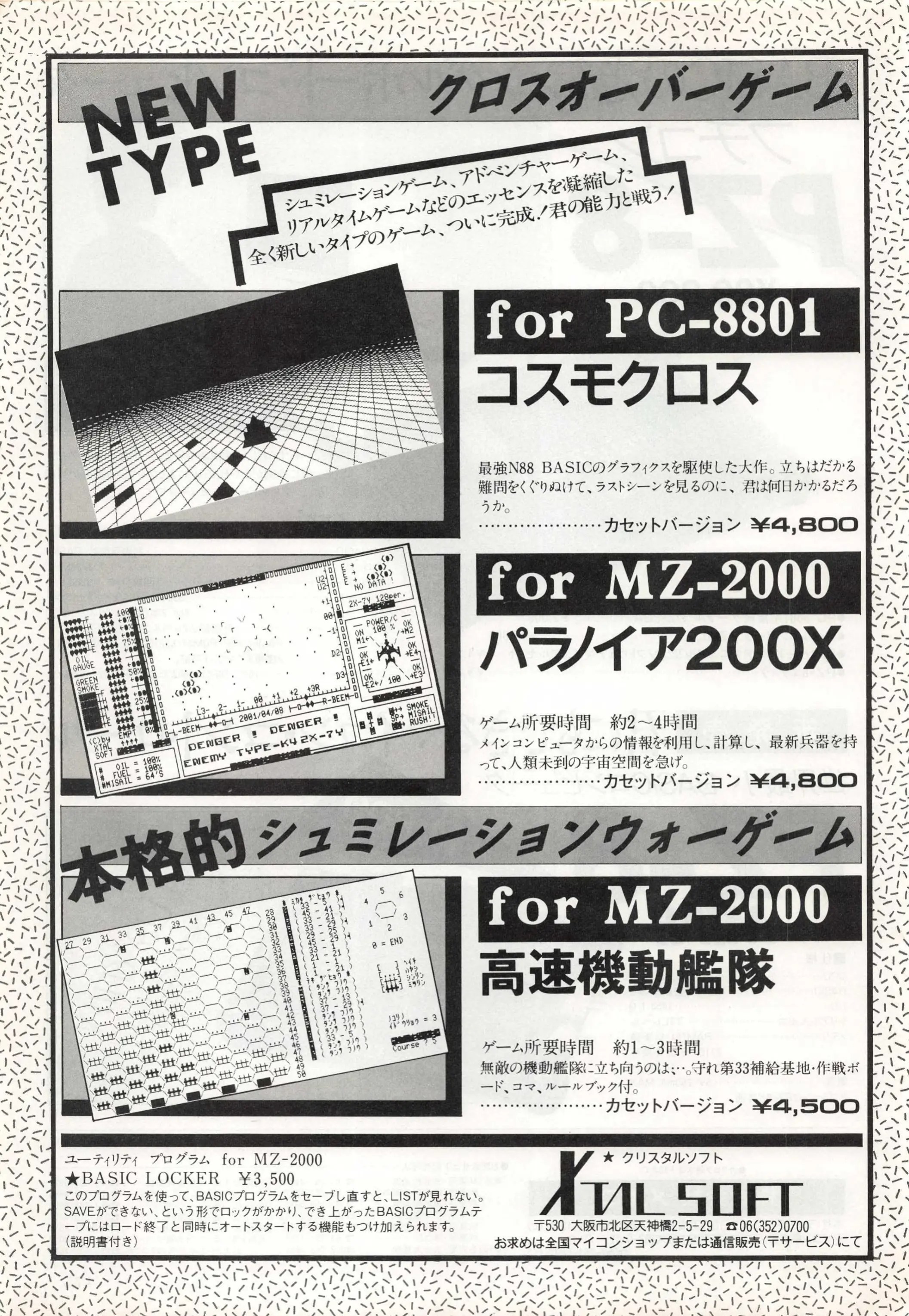 Xtal will return with more adventures, so if nothing else, this gives a preview of what their kind of thinking might lead to. There’s even a sequel to Cosmo Cross by the name of Grand Cross, sorted as “ADV/RPG” although I’ll worry about what sort of genre it really falls into once I get past 1983.