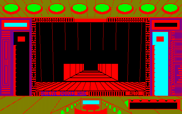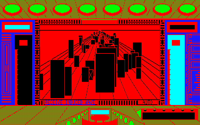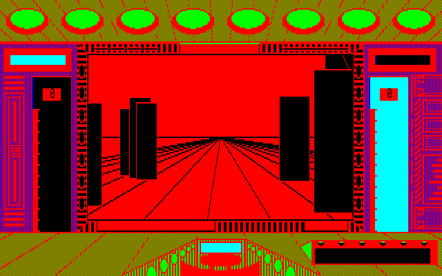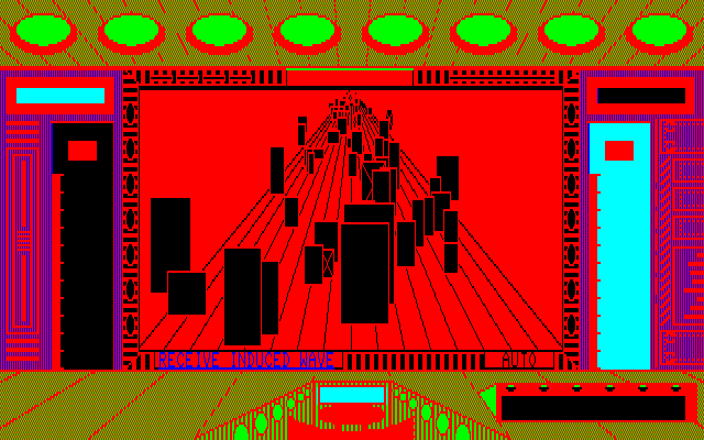 The goal, according to the manual, is to find a series of six rectangles that you shoot with the Revival Ray (powered by the Bluestone) and you’ll be able to escape. Oddly enough, it appears to be impossible to crash moving backwards, so the way to position yourself is to slide far to the right (past whatever hitboxes the game thinks are there, visible and invisible) and slide forward the right amount, then slide back into place. At least I think this is the strategy, as I haven’t found a single one of the rectangles, and this is with occasionally hitting the “speedup” key to keep the sluggish movement from being so sluggish.