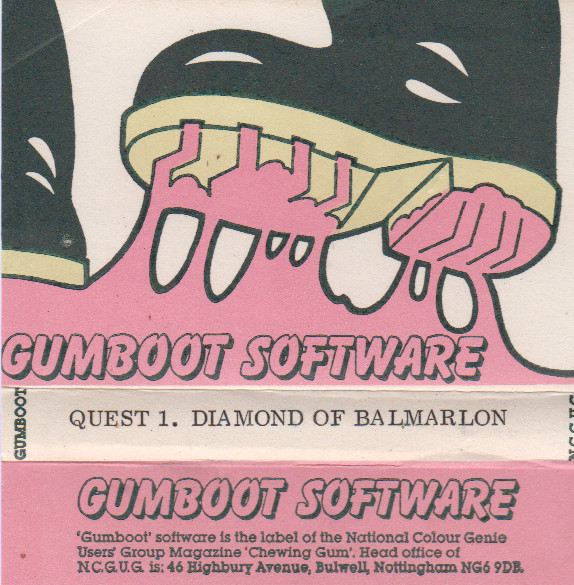 It was through this i got my first paid work in the arts, designing awful cassette covers for Marc Leduc’s awful Scott Adams Adventure rip offs like ‘Find The Diamond Of Balmorlan’, i think it was he who showed me that if you press ‘break’ you could view the guts of the program and edit your own narritive into it, so i remixed a shit maze chase game into ‘Death Droid’ and gave it to people at school.