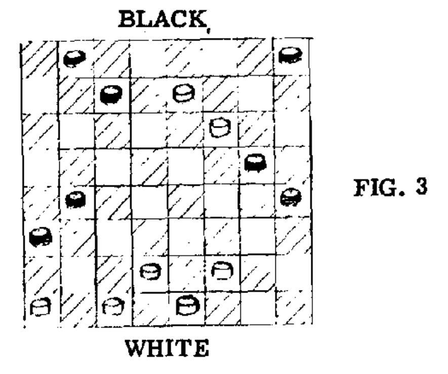 For gaming history he is particularly known for a draughts (checkers) program that sometimes gets designated as the “first videogame”. There’s a lot of conditionals to that, including if a program called Bouncing Ball counts once a hole is added (and when that happened), but I’ll defer to the discussion here for details. I instead want to discuss what the game looks like. This it the picture most commonly seen (including on Wikipedia):