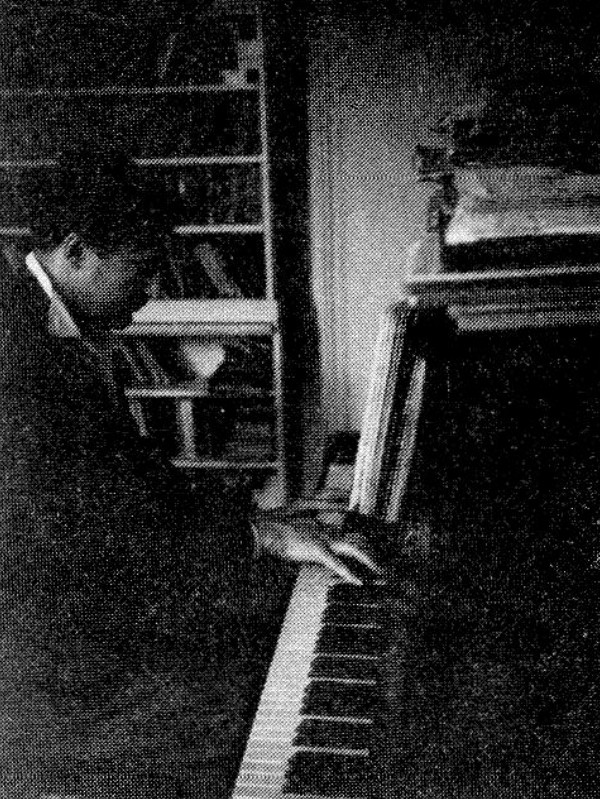 Strachey at the piano, date unknown. From Christopher Strachey, 1916-1975: A Biographical Note. Annals of the History of Computing, Volume 7, Number 1, January 1985.
