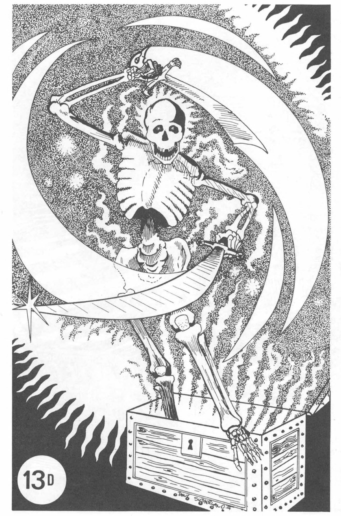 This is the part that I think might be derived from Tomb of Horrors. Amongst the traps of the game is a room with three chests: gold, silver, and wood. The wood one has a skeleton.