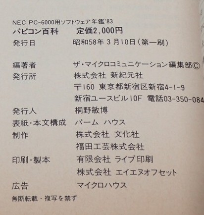 Last time, I mentioned three books published at the incorporation of Shinkigensha. One of them was an NEC PC “yearbook”, essentially an encyclopedia of software.