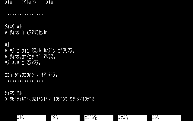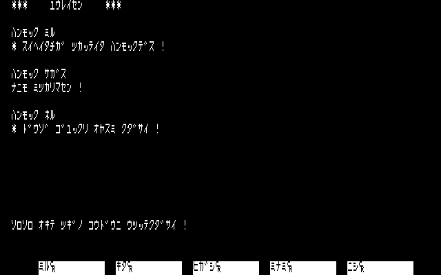 Returning to the game, I suspected I was missing some mechanical aspect to how it worked. Indeed I was. It turns out that objects only exist in a room if you’ve applied LOOK (that is, miru or miwatsu) to the room. Doors are an exception but they aren’t treated as normal objects; they are hard-coded into particular rooms.