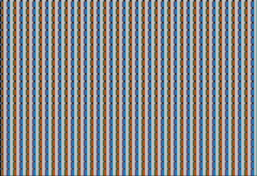 The short hallway ends at a heavy steel door inlaid with enamelled tiles, each of which is a different color. The tiles, nine in all, are arranged in a 3×3 grid, thusly: