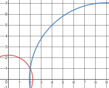 4.) drawing arcs from (9,0) with the four different distances that were given