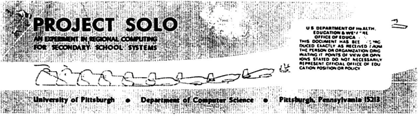 Project SOLO was started in 1970 by Thomas A. Dwyer as an experimental program in “exploring the potential of computers in the hands of high school teachers and students.” The name was meant to reference the transition of a pilot learning to fly, from “dual” flying with an instructor to “solo” flying alone.