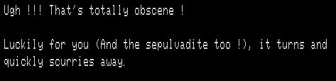 This apparently only happens when you’re carrying the glasses, for no clear reason at all. (The knife, incidentally, can be used to drive away the sepulavite instead of the gun, but you have to use the verb KILL instead of STAB even though both are recognized. STAB sometimes works but sometimes it randomly fails.)