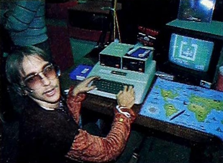 At the same event was Ken and Roberta Williams, with a large space at the entrance devoted to Sierra On-Line. They had just added the “Sierra” to their name. Allegedly this was to avoid overlap with another company, but also, quoting marketing director John Williams, the original name of the company was “generic as could be and dull as dishwater”. The booth had a mural of a Sierra waterfall to announce the change. Richard Garriott was there, showing off Ultima II (now a Sierra product) while dressed as Lord British.