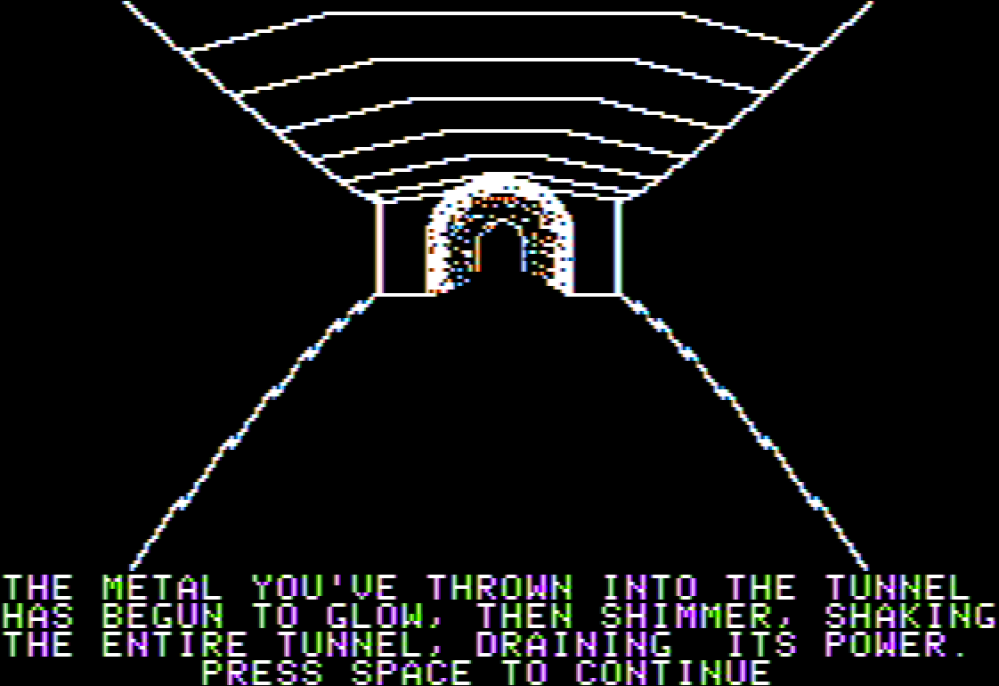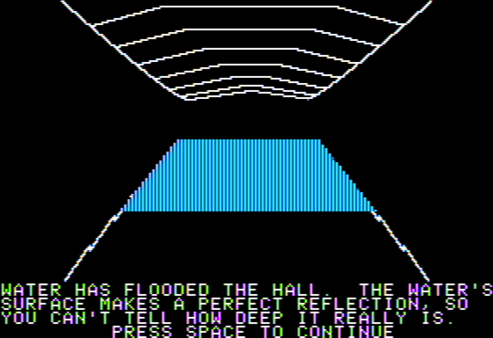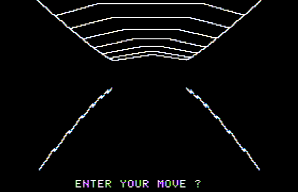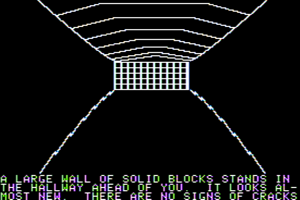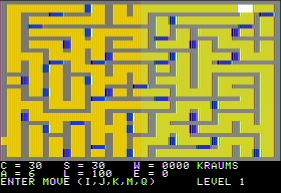 The game moves sluggishly (especially at authentic 1981 Apple II speeds!) and the maze is so random it seems to have no logic at all. You can go down a dead-end hallway only to turn around and find a stairway up has appeared.