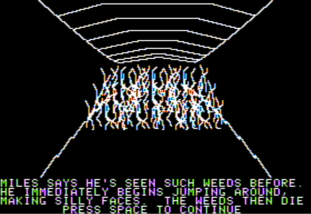 Occasionally there is enough logic to passing an obstacle that I was able to do it first try; when encountering some weeds I tried USE MILES, my farmer…