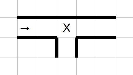 Above is a typical configuration. I was going “east” and I hit the spot marked “X” and there was a river of blood I used a plank to get by. In the process, I missed seeing the passage that went “south” and had to turn around and enter the X position to find it. It’s possible to “skip” the intersection multiple times if you keep finding encounters there.