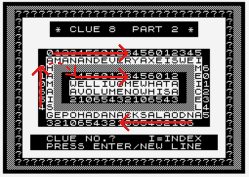 We did … poorly. But not as poorly as I feared. There was a mixture of “argh, we were close” and “I have no idea”. All this comes from an issue of T-S Horizons, a magazine dedicated to Timex-Sinclair computers (as the US version of the game was run). A “Gary Gogel of Arizona City” somehow obtained a complete solution document that is a full 14 pages long, suggesting some answers requiring ludicrous work.
