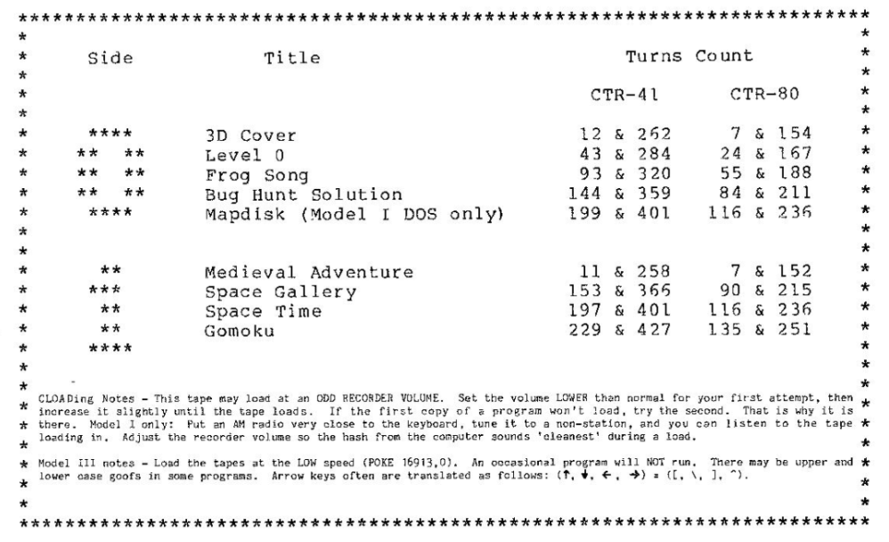 First, an apology: I had somehow, in my scan of 1980 games last year, looked at this game and decided there was no 1980 copyright date in the BASIC source code so kicked it up a year. Then, I went back recently to play it, and found the 1980 copyright after all. Oops. No matter: this was written in 1980 and published in the April 1981 issue of CLOAD (previously seen with: Frankenstein Adventure, Troll’s Treasure, Elephant Graveyard), so it’s a perfectly fine moment to play it.