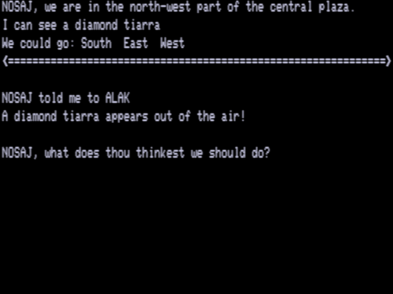 It’s still fascinating as a look at a genre, the competitive multiplayer adventure game, which, much like the adventure-roguelike, never took off. CASA lists seven other multi-player games out of its entire database; there’s likely the odd BBS door game not listed, and some MUDs might have reduced enough RPG elements to qualify, but we’re still talking about something rare. Even in more modern settings (like the Seltani system) the default for multi-player adventures is cooperative.