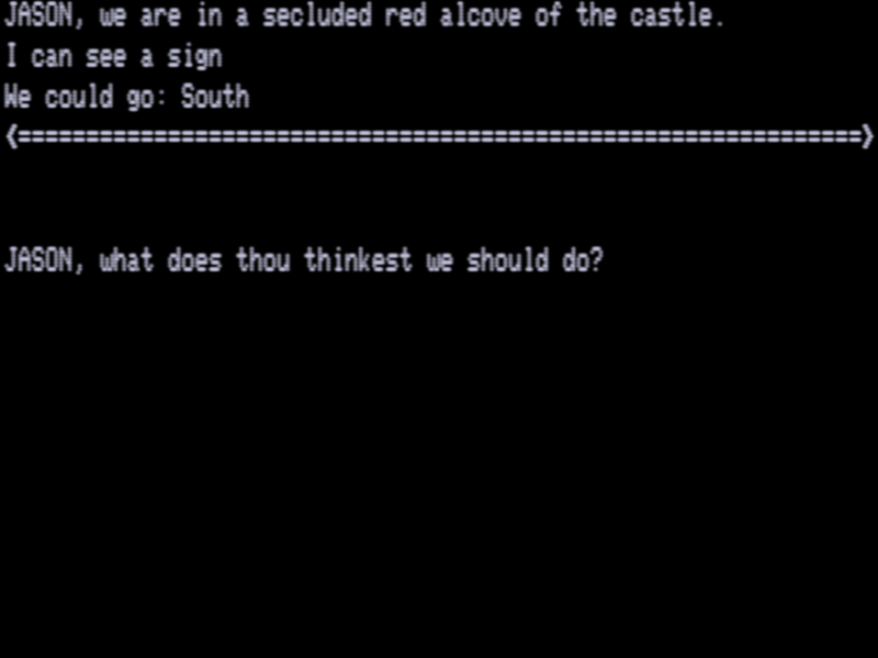 The whole pit/drawbridge setup was useful for another reason, shown above: it was a quick and reliable way to go unconscious. After I had done enough experimentation I put JASON permanently on ice (only typing GO PIT when he woke up) and having his doppelganger NOSAJ collect all the objects to win the game. Most of the puzzles are relatively straightforward…