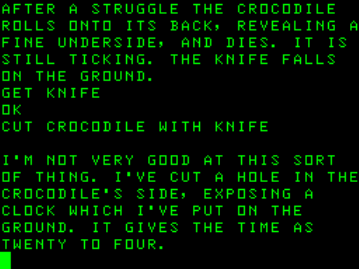 Note that by bad luck you may run into the crocodile before you get the knife and just die on a particular run (this is another similar element to Atom Adventure).