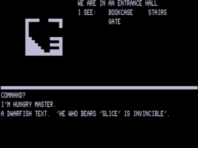 (Oh! I should talk about the MASTER that appears. The game’s “puppet” takes a “Igor from Frankenstein” like attitude and responds to every command with MASTER. There was a fair amount of hand-wringing over “who are you communicating with” in this era, with the weirdest example from 1980 being CIA Adventure pretending you are speaking with a “partner” who is doing all the actions.)