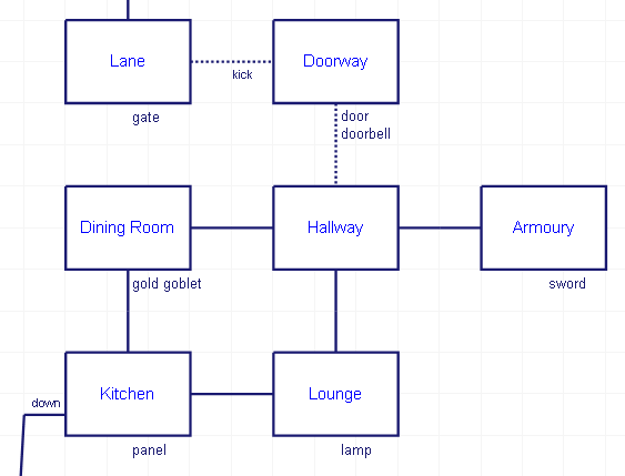The “doorbell” is strange in the description since this is a “first three letters only” style parser, so it first seems like the game only lets you refer to the door, not the doorbell. The trick is to use the noun BELL, but alas, that doesn’t translate to progress: