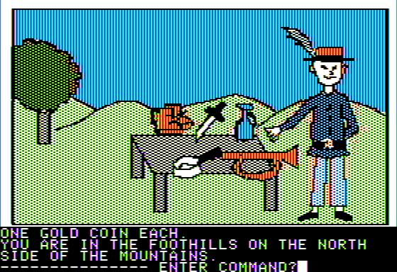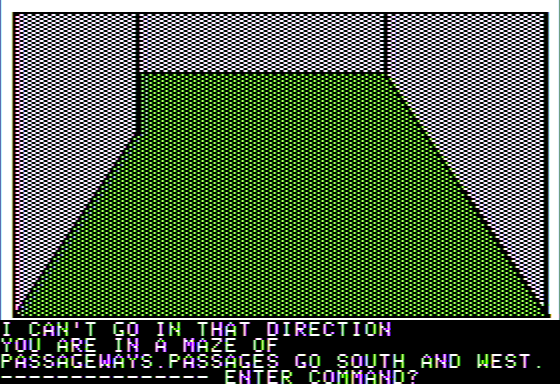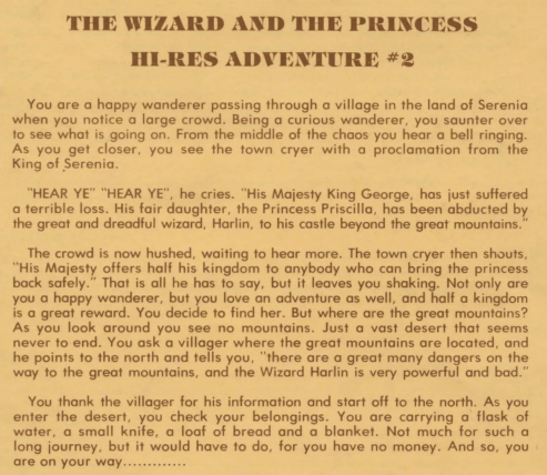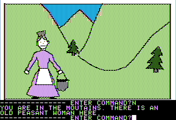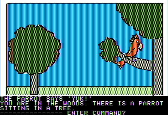 Er, I suppose? To some extent? The parser is vastly better than Mystery House and I don’t recall any point I had to fight with it. There are certainly places you can “bust” your game and make it unwinnable, but with nearly every instance the issue is immediately obvious, and the two cases where it isn’t (the lion and the peddler) have the consequence very shortly after the mistake. He had trouble with both the “split note” puzzle (from my last post) and getting through the drawbridge (which was the trumpet; yes, it has to be “magic” for the puzzle to make sense), both puzzles which I solved almost immediately.