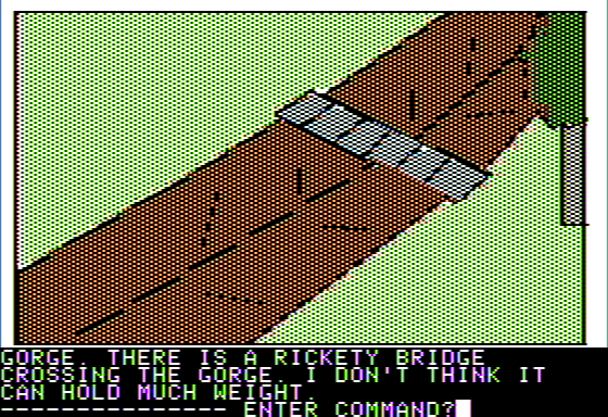 After a brief scene with the woman above (where she just warns you about a giant in the mountains, and seems to be in the game purely for flavor) I came across a bridge that reminded me of King’s Quest II.