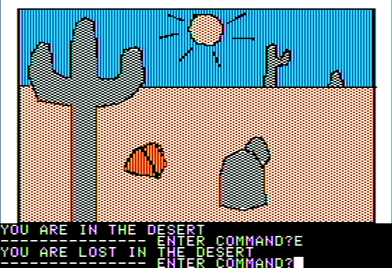 You can >LOOK CACTUS to find THERE IS A HOLE IN ONE CACTUS but the puzzle really requires noticing the visual, which I could see someone missing entirely. So for the player who missed the object, what would their play experience be like? They’d get a lot of YUK, presumably, and maybe try various ways of killing or capturing the parrot. The action could easily devolve into the stereotypical sociopathic adventurer. And this is just with one (relatively straightforward) puzzle! There are plenty of moments where one missed object could cause headaches.