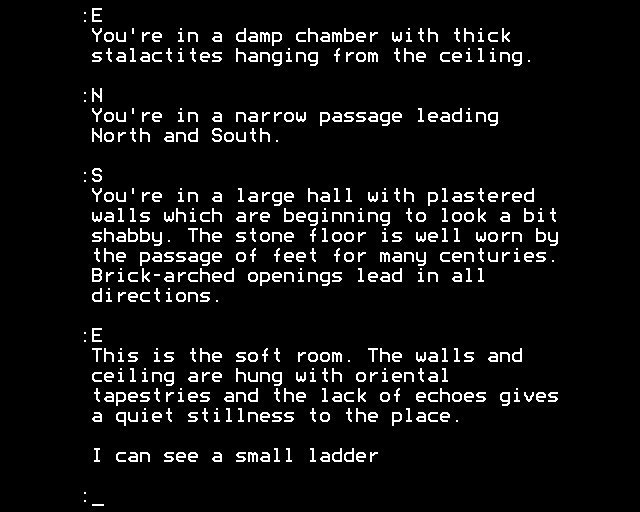 As is usual for authors still under the shadow of Crowther/Woods, the objective is to gather treasures. As is slightly unusual, the instructions state you need to DEPOSIT the treasures rather than DROP them to get points. The instructions don’t give how many treasures there are or even a maximum possible score.